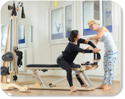 Der Reformer bietet sich auch im Rehabereich an. Dies Dank des